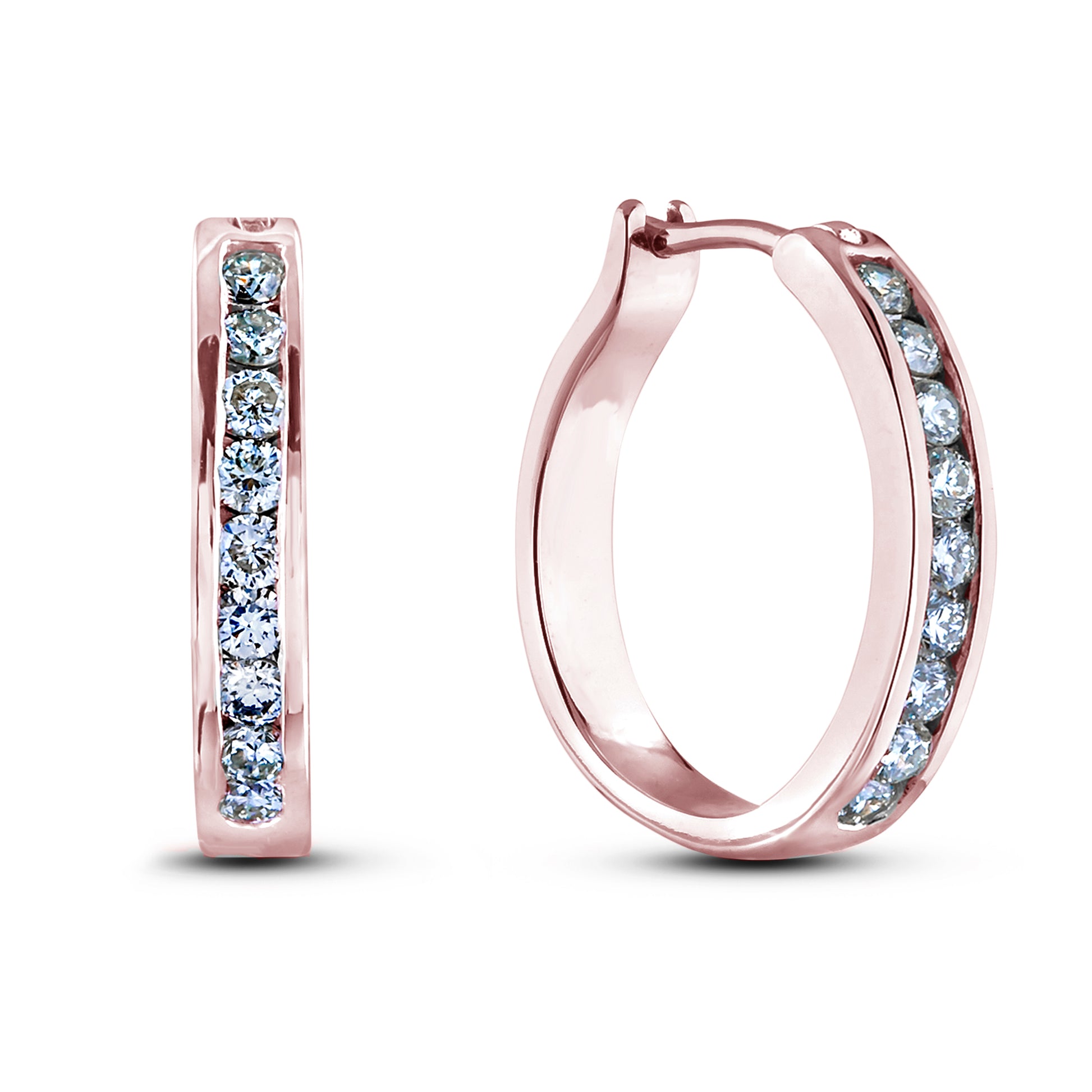 10 karat gold natural round brilliant cut Canadian diamond huggie-style hoop earrings in your choice of white, yellow, or rose gold.