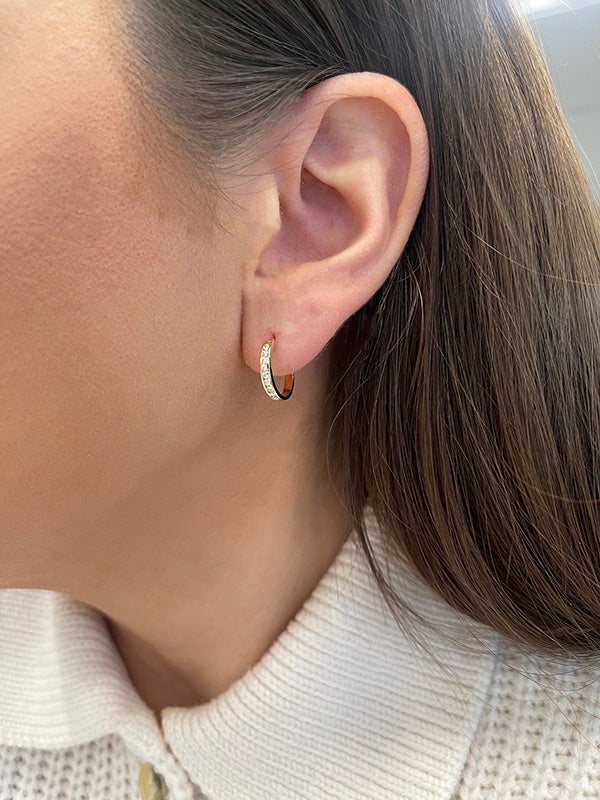 10K Gold 0.22Cttw Canadian Diamonds Channel-Set Huggie Hoop Earrings