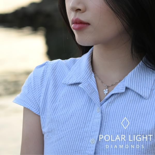 925 Sterling Silver 0.02 Ct Natural Canadian Diamond Four Leaf Clover Pendant & Paperclip Chain