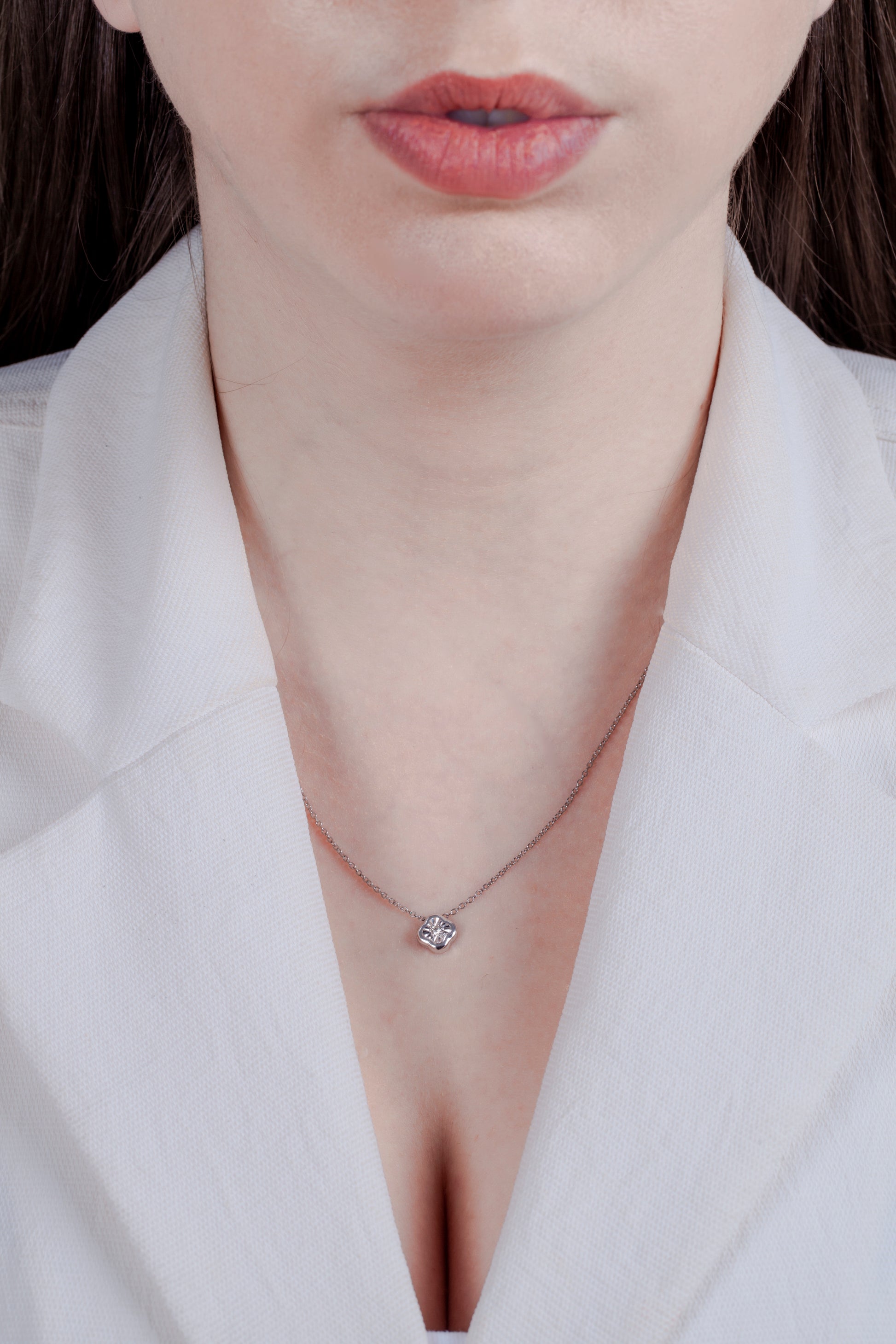 A perfect gift with a canadian twist for yourself and your loved ones. Sterling silver floral motif pendant featuring a round brilliant cut, canadian diamond set in a miracle illusion setting. The pendant comes with a canadian id card certificate and polar light jewellery box.