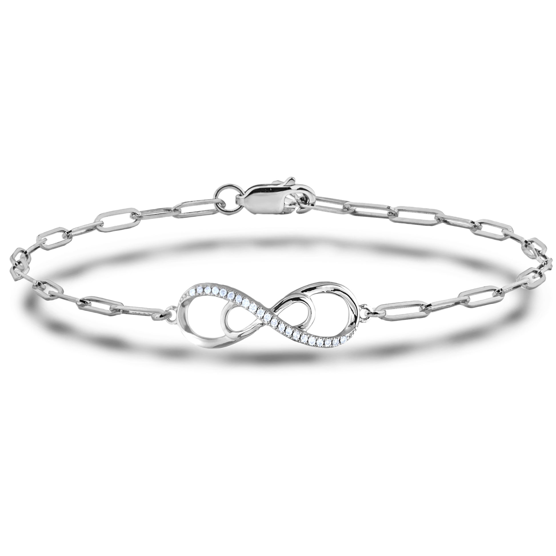 925 Sterling Silver 0.15 Ctw Natural Canadian Diamond and Infinity Symbol Chain Paperclip Bracelet