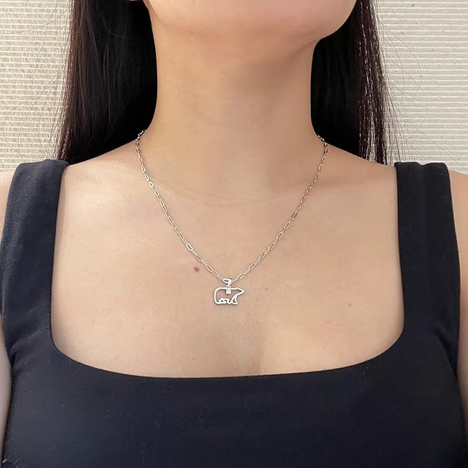 Natural Canadian Diamond Polar Bear Pendant and Paperclip Chain